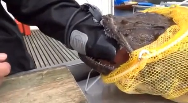 Un pêcheur se fait croquer la main par un crapaud de mer !
