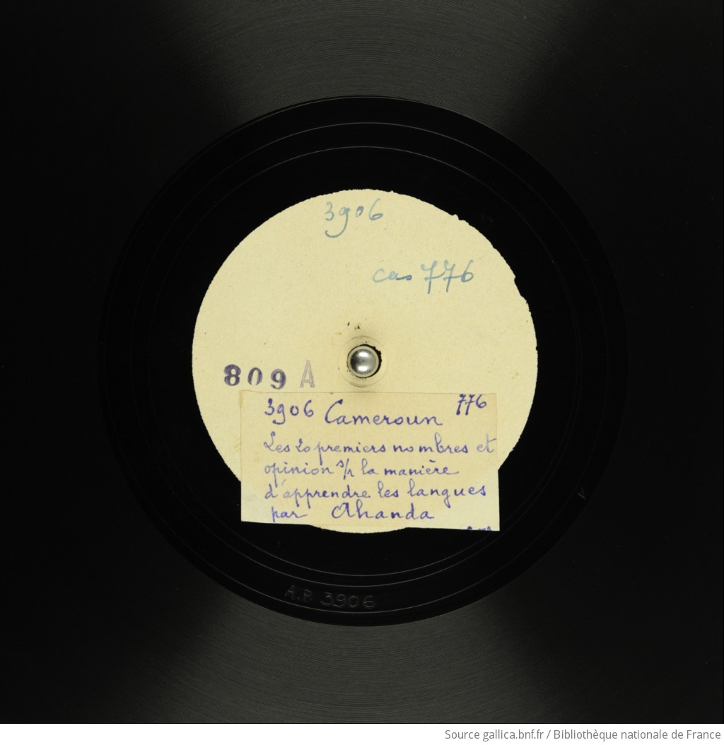 Musée de la parole et du geste]. , 20 premiers nombres ; Opinion sur la manière d’apprendre les langues ; Histoire de son père allant à la bataille / Ahanda, voix | Gallica